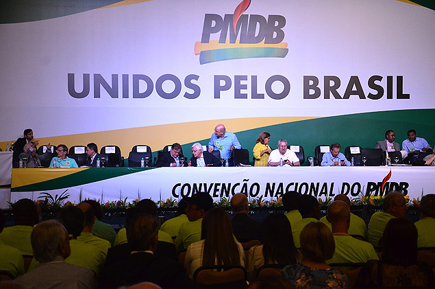 Membros do PMDB durante convenção nacional da legenda em Brasília, em março. Foto: Renato Costa / Folhapress