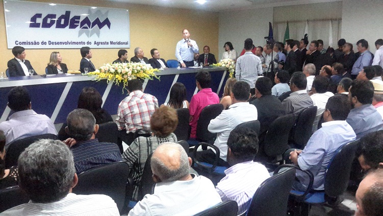 O senador eleito por Pernambuco, Fernando Bezerra Coelho (PSB), participou nesta sexta-feira à noite da cerimônia de posse do novo presidente da Comissão de Desenvolvimento do Agreste Meridional (Codeam), Leonardo Martins, prefeito de Inajá. O evento, realizado em Garanhuns, contou com a presença de mais de 30 prefeitos do Agreste e Sertão. O deputado federal Fernando Filho (PSB), o estadual Claudiano Filho (PSDB) e o presidente da Associação dos Municípios de Pernambuco (Amupe), José Patriota (Amupe), também estiveram presentes. O secretário executivo de Articulação Política, Anchieta Patriota, representou o Governo do Estado. O estudante João Campos, filho do ex-governador Eduardo Campos, compareceu em nome da família.
