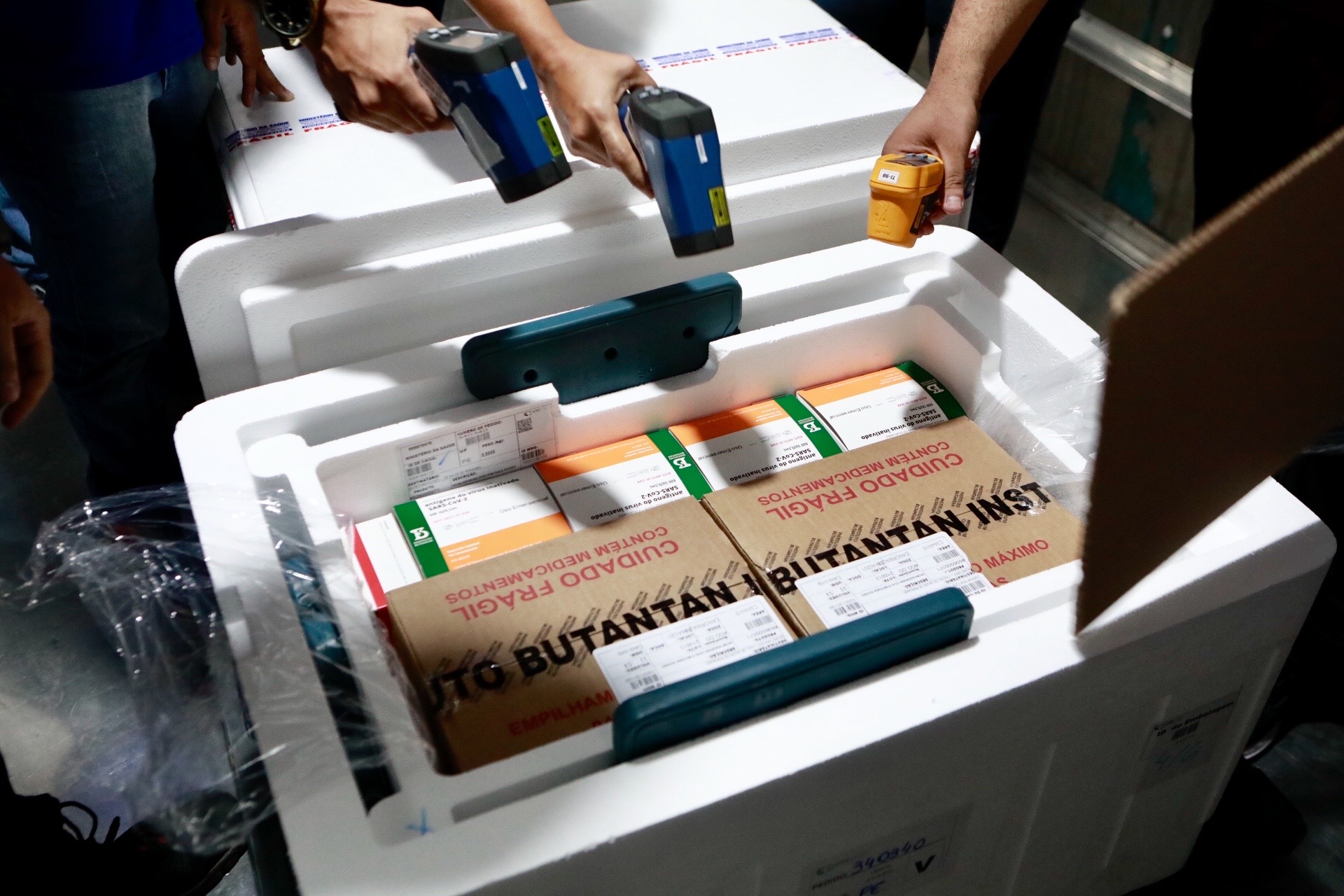 Uma nova remessa de vacinas da Sinovac/Butantan, com 118.200 unidades do imunizante, chegou a Pernambuco na manhã de hoje.