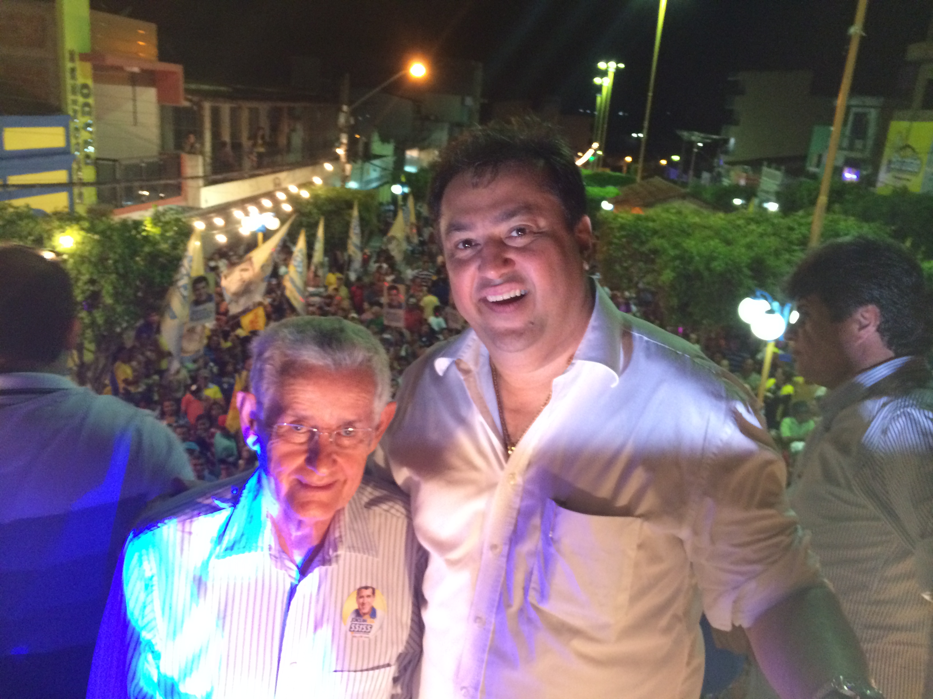 O candidato a deputado federal, Sebastião Oliveira ao lado da ex-prefeita, Jane Povão e o candidato a estadual Joaquim lira, inauguraram o comitê conjunto no município de Pombos. A instalação ampla do comitê não comportou a quantidade de pessoas que participaram do evento que teve que ser transferido para rua, em cima de um trio elétrico.
